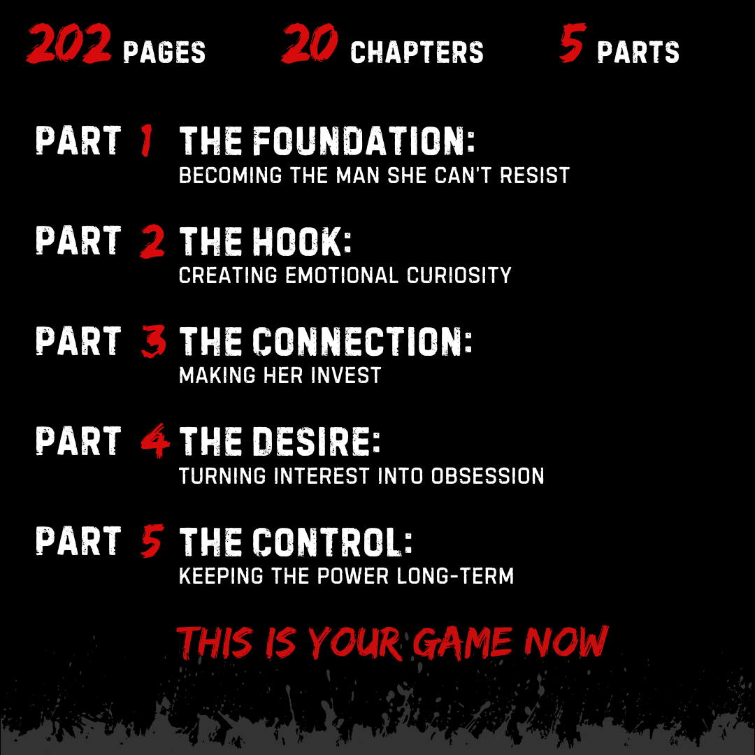Finally, you will discover how to turn interest into addiction by mastering withdrawal, tension, validation, and respect. This is the complete evolution of attraction, from approach to obsession, from attention to control.